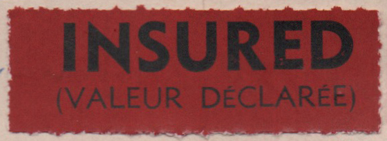 VALUE PAYABLE LABEL: Type 1 – “V” Manuscript Improvised Registration Label