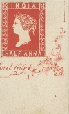 Title: The 1854 9½ Arches Essay: ½ Anna Deep Vermilion – Right Corner Margin