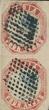 Title: 1854: The 4as Lithograph Red & Blue Vertical Pair – Head Die III, Frame Die II