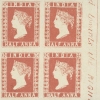 Title: The 1854 9½ Arches Essay: ½ Anna Deep Vermilion – Block of Four