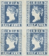 Title: 1855: ½a. Blue Die III 'D' stone Block of Four