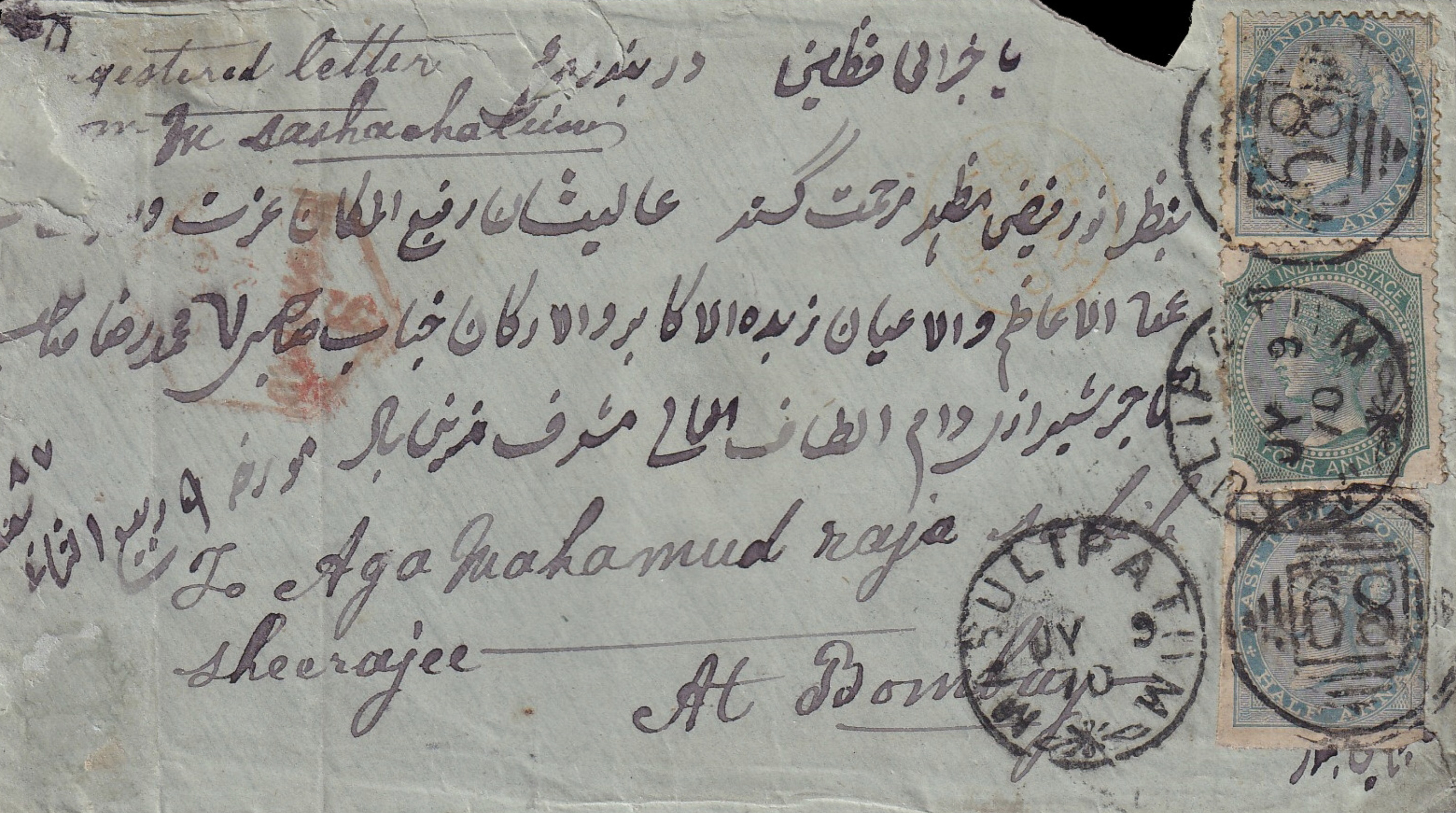 1870 Registered Cover from Masulipatam to Bombay – Franked with ½a Imperforate Stamp