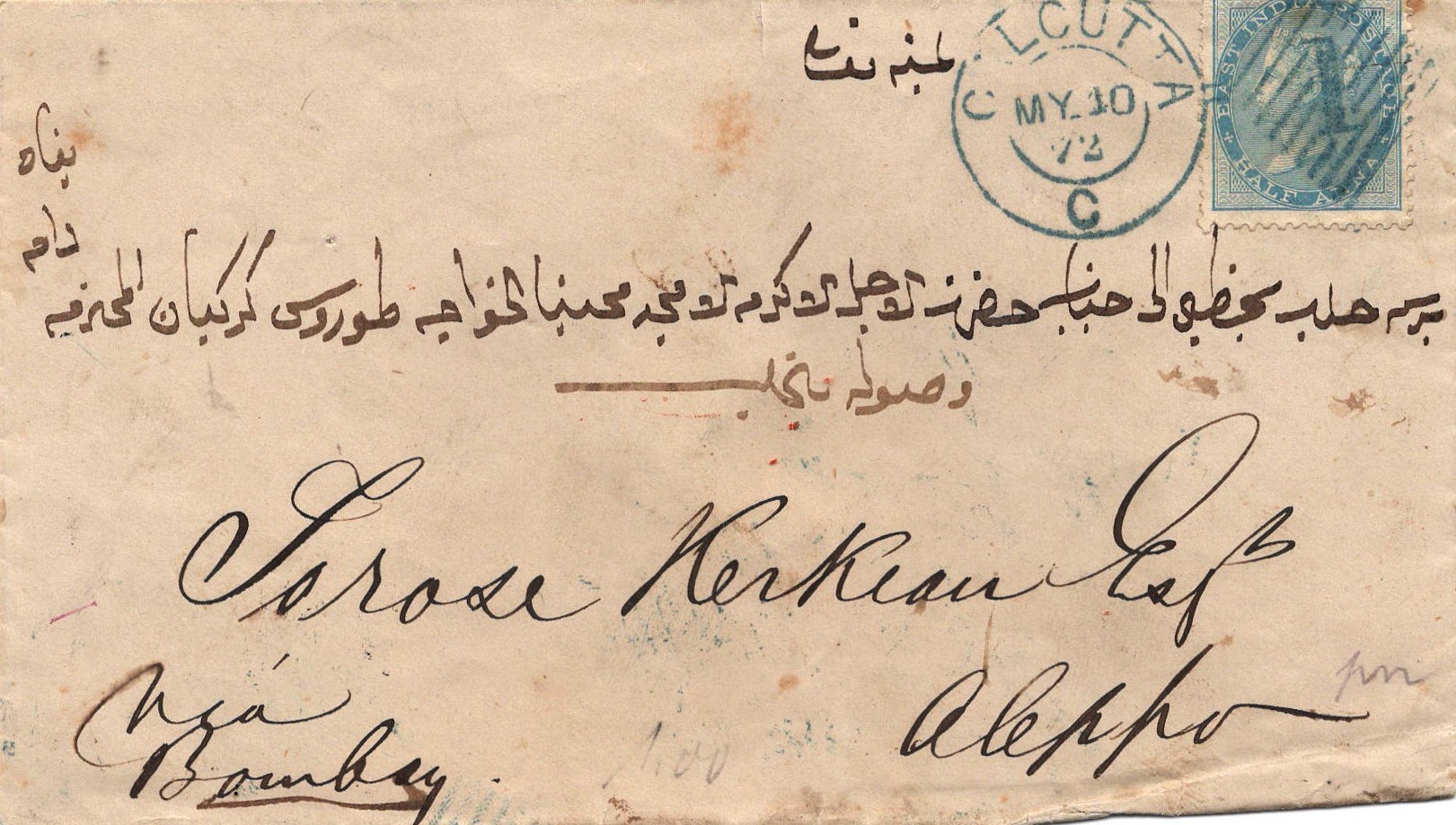 1872 Transit Mail from Calcutta to Aleppo via Bombay and Baghdad