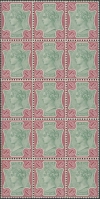 PHILATELIC ITEMS Title: 1892 Block of 15 of the 1 Rupee Green & Aniline Carmine Date: 01-Jan-1892 Cover Type: |