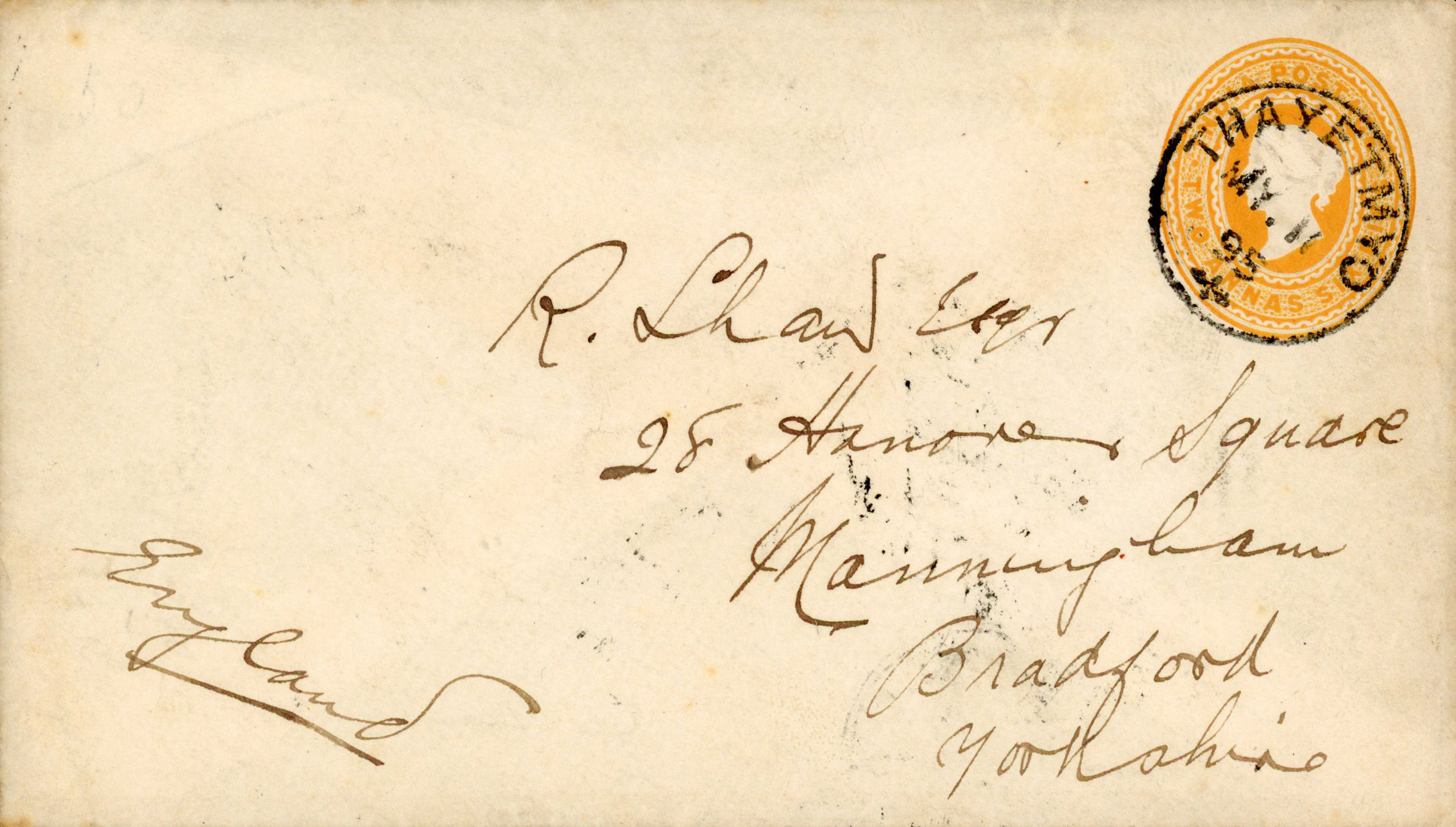 1895 Mail from Thayetmyo to England via Rangoon and Bombay