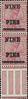 PHILATELIC ITEMS Title: 1921: The “NINE PIES on 1a" Double Surcharge Error - Vertical Pair Date: 06-Jun-1921 Cover Type: |
