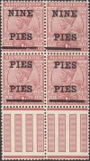 PHILATELIC ITEMS Title: 1921 NINE PIES Surcharge Block of 4 with Error Overprint "PIES PIES" Date: 06-Jun-1921 Cover Type: |