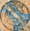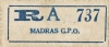 Madras Post Office: White label with blue "A" and "MADRAS G.P.O."