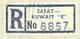 Title: Safat Post Office Registration Label: “SAFAT – KUWAIT” – “E”