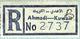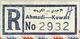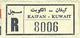 Ahmadi Post Office Registration Label: "Ahmadi-Kuwait" with A in applied in pen – Dual Language