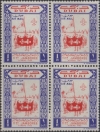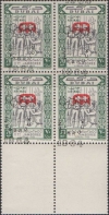 Title: 1964: Innsbruck Olympic Overprint – Black Overprint Shifted Down / Inverted Red Shield Block of Four