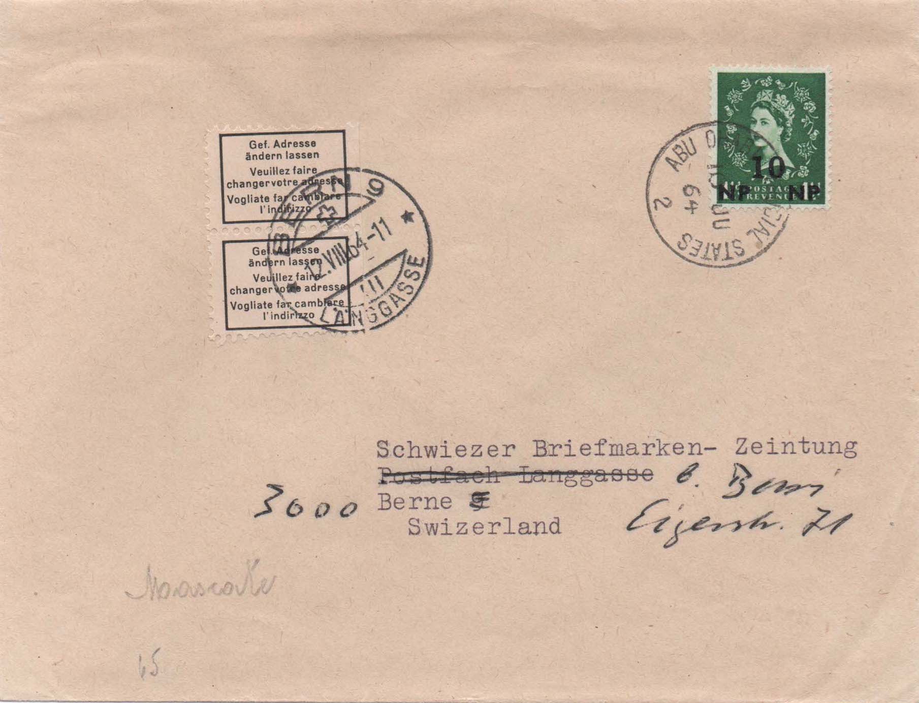 1964 Printed Matter Mail from Abu Dhabi to Switzerladn