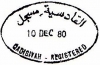 Type c20a: Salmiya Central Post Office - The Oval Registration Date-Stamp with Arabic Post Office and Registered