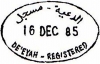 Type c20a: De'eyah Post Office - The Oval Registration Date-Stamp with Arabic Post Office and Registered